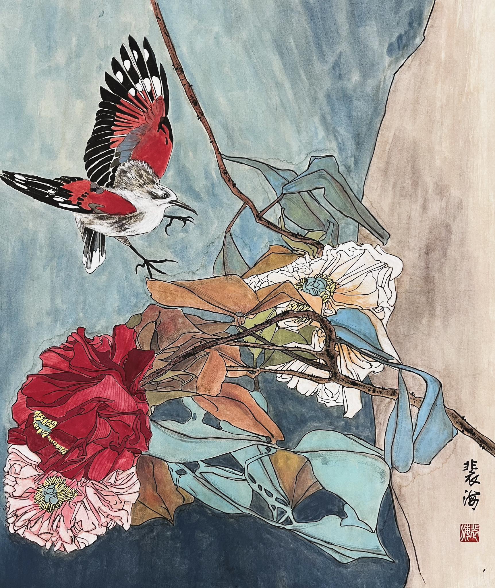 Tác phẩm: CHIM HOA Họa sĩ: Bùi Hải Năm sáng tác: 2025 Chất liệu: Thủy mặc Kích thước: