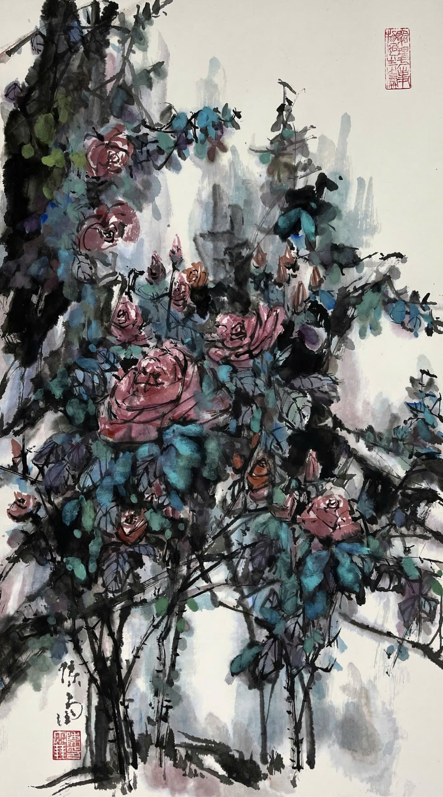 Tác phẩm: HOA HỒNG Họa sĩ: Trần Vũ Bằng Năm sáng tác: 2025 Chất liệu: Thủy mặc Kích thước: